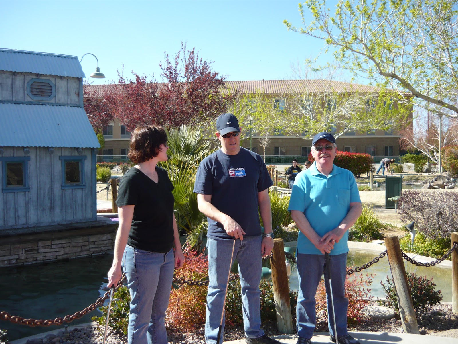 Yesterday we celebrated Justin's seventh birthday by playing Mini-golf and having pizza and cake. A good time was had by all. Today we went to Camping World to pick up a few things and several dollars later, we are now set with a rack for our bikes that is so much easier to use. As an RV owner, going to Camping World is very dangerous. There is a million things that you just can't do without. Today was another beautiful day with sunny skies and temps in the 70's. Barbecued chicken with the Plendls tonight and probably another rousing game of Ticket to Ride.